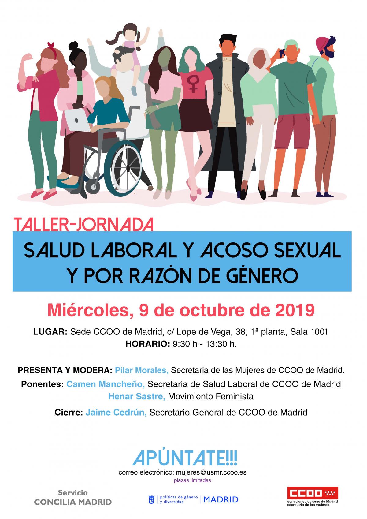 CCOO Altamira participa en el taller celebrado el  miércoles, 9 de octubre,  taller “Salud Laboral y Acoso Sexual y por razón de Género”, en el sindicato, junto con el  Servicio Concilia del Ayuntamiento de Madrid. donde el feminismo, la salud laboral, el acoso sexual y la necesidad de protocolos de acoso sexual en las empresas fueron los temas claves tratados desde la mesa.
