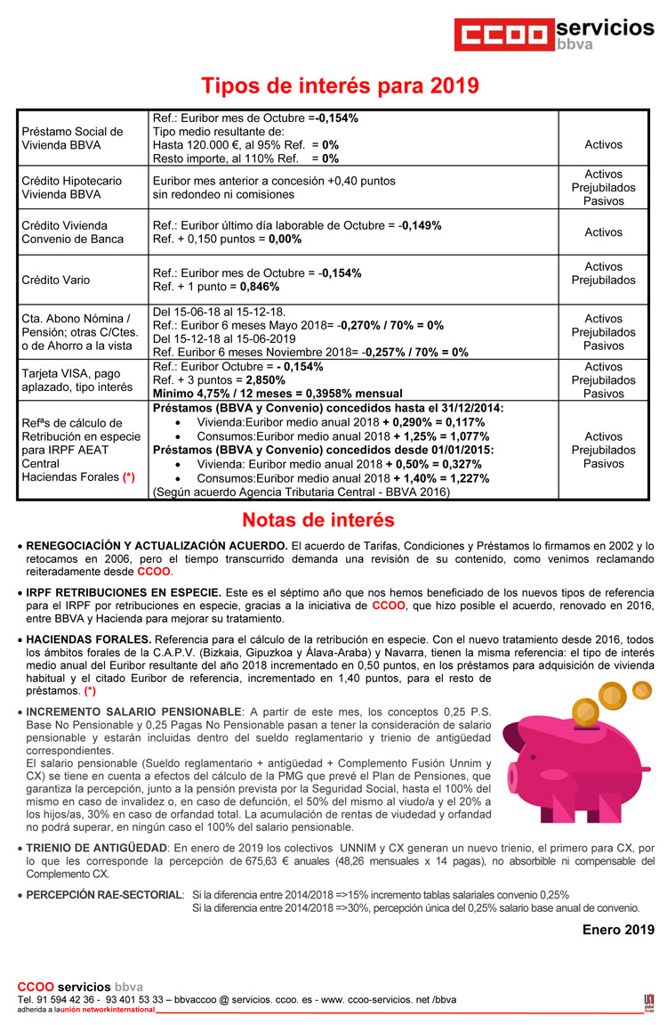 tipos de interés para empleados y empleadas de BBVA que van a aplicarse para