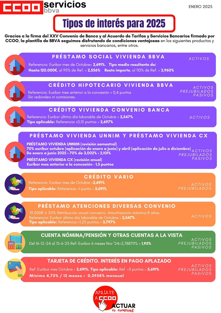 Estos son los tipos de interés que tiene la plantilla de BBVA para 2025.
