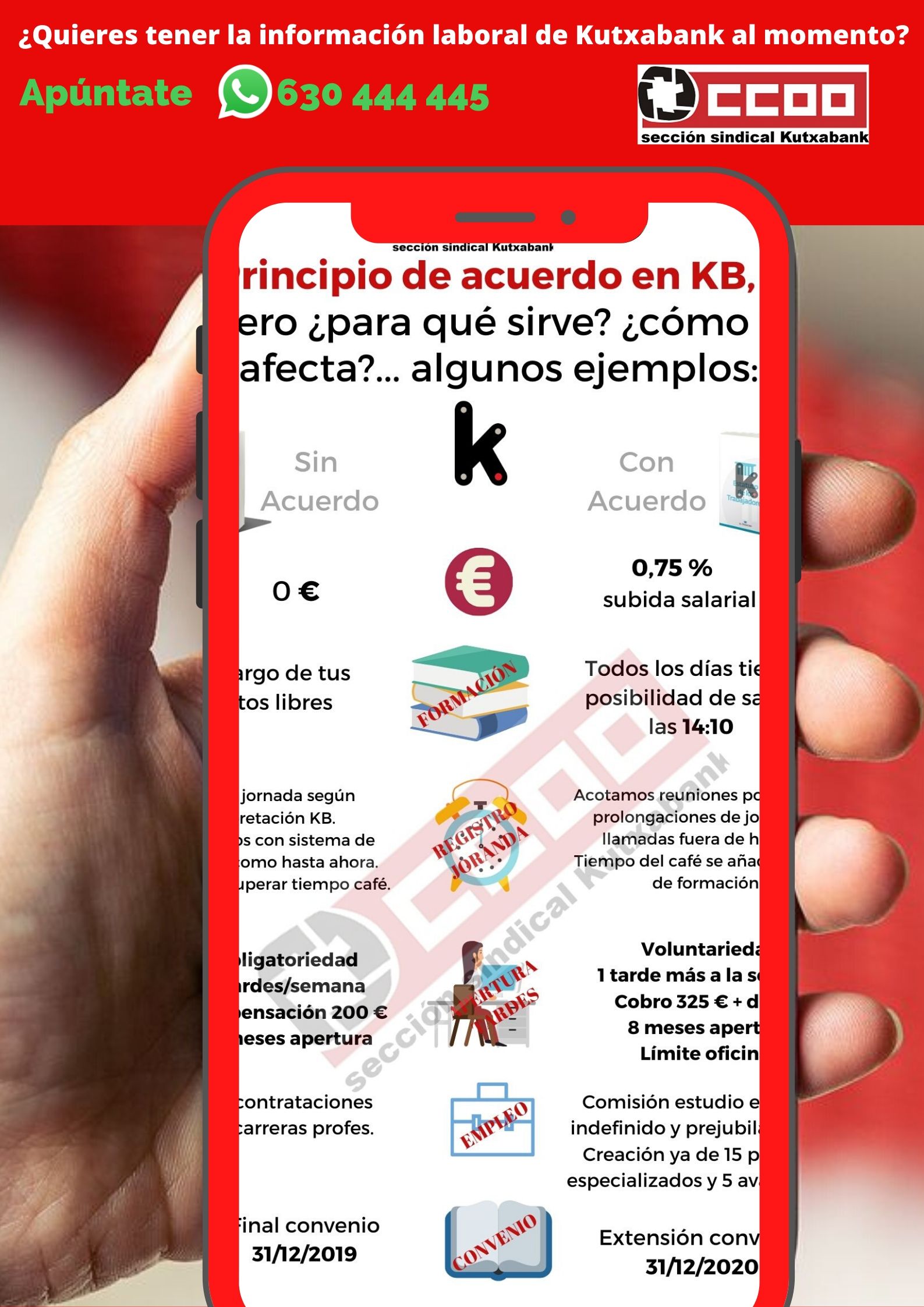 Facilitamos a la plantilla de Kutxabank la opción de estar informados al momento en su móvil, además de encontrarnos en la web, twitter o correos corporativos.