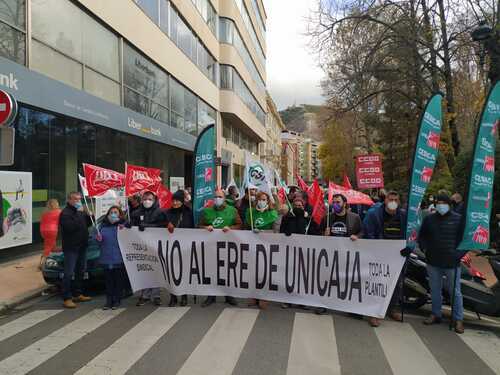 Las movilizaciones contra el ERE de Unicaja se mantienen frente a una última reunión anoche en la que la entidad sigue adelante con la intención de ejecutar 1.513 despidos en condiciones totalmente inaceptables y medidas de movilidad forzosa.