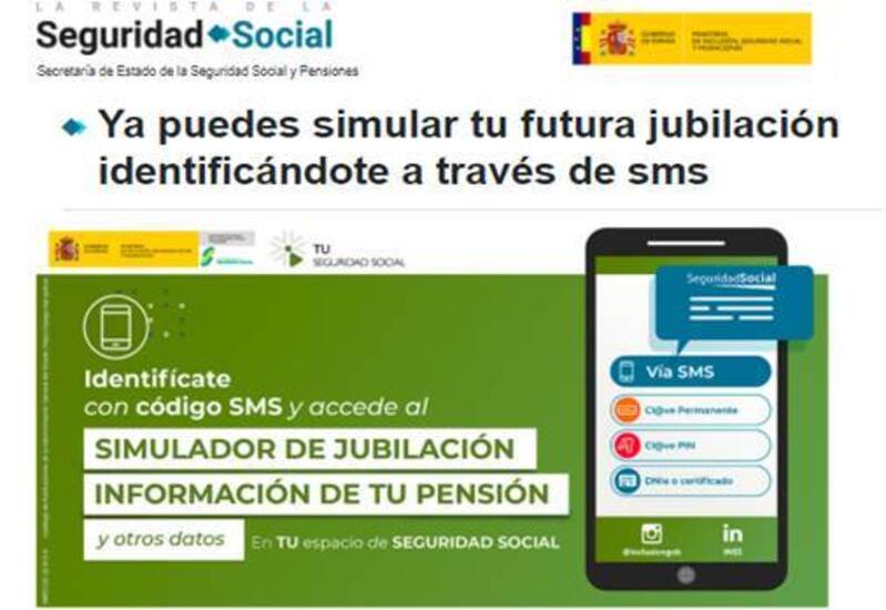 Ya puedes acceder con identificación mediante sms a la información en el portal Tu Seguridad Social, incluido el simulador que te permite hacer una estimación de tu futura pensión de jubilación y de la fecha de acceso a la misma..